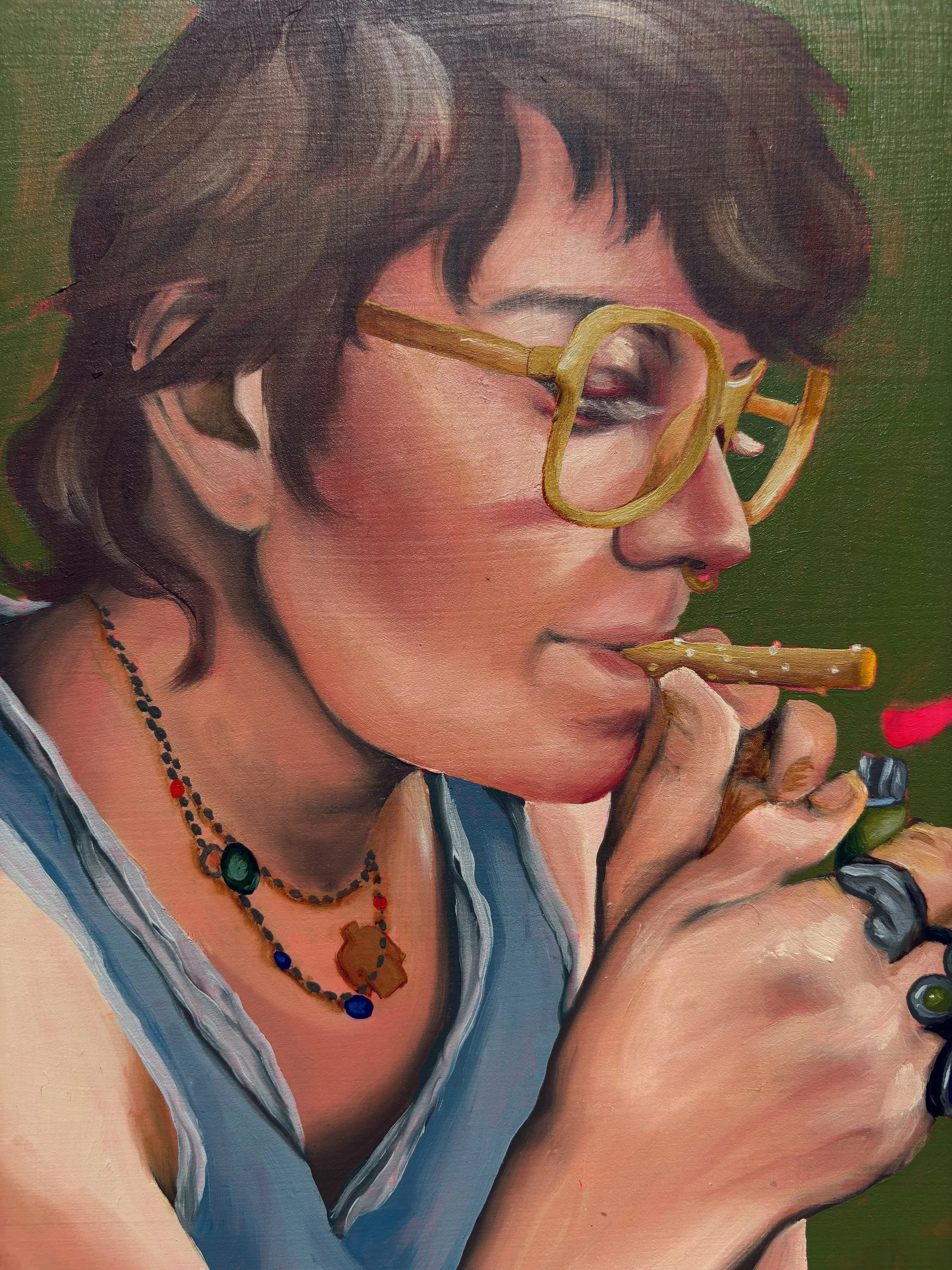"E" (2022), oil on wood panel, 18x24"